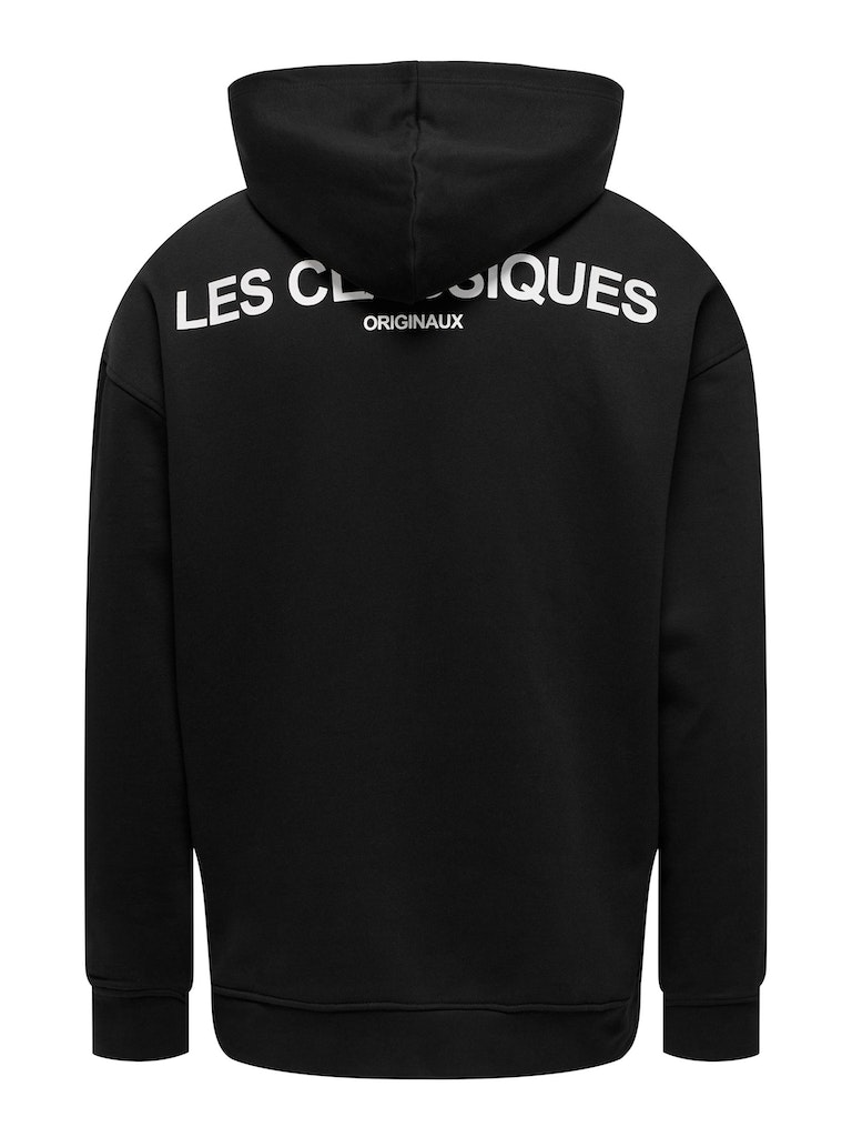 Deze warme hoody sweater heeft zowel voor als achterop de print 'Les classiques'.