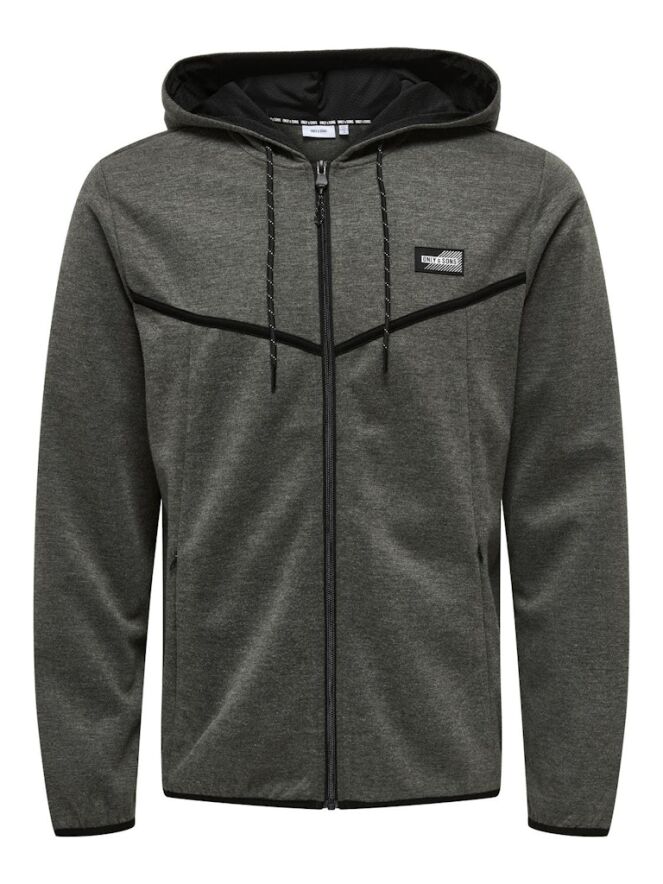 Fijn hoodie vest van Only & Sons met capuchon. Met twee ritszakken en een vlot uiterlijk van dit vest kom je sportief voor de dag!