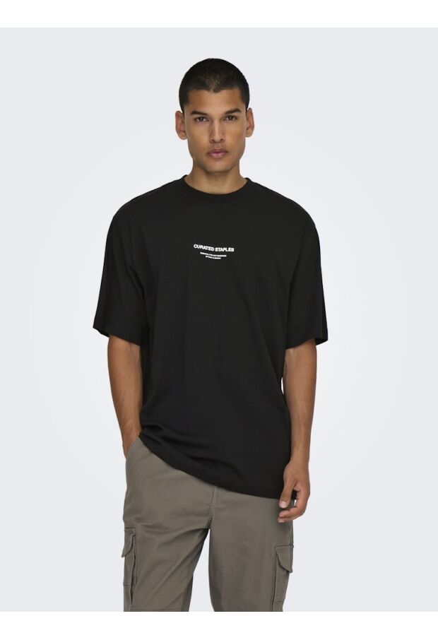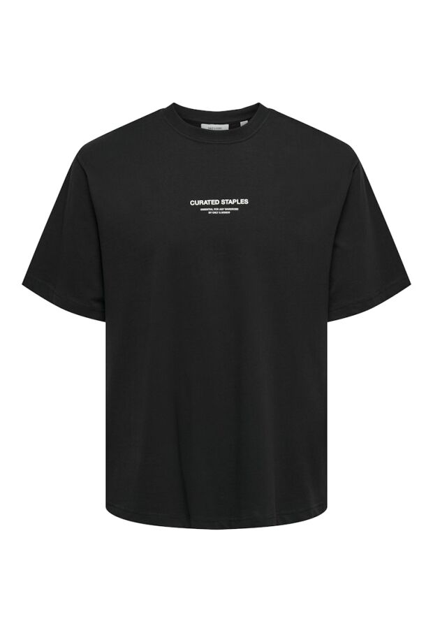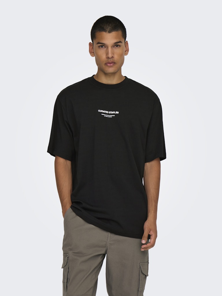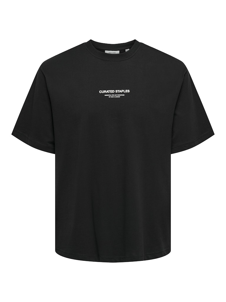 Basic zwart T-shirt van Only & Sons met een kleine tekst.