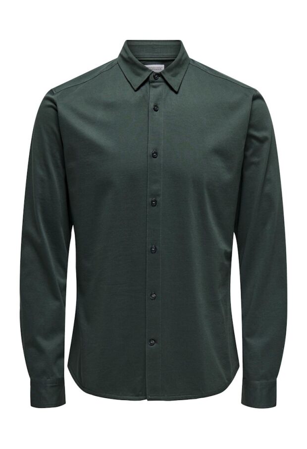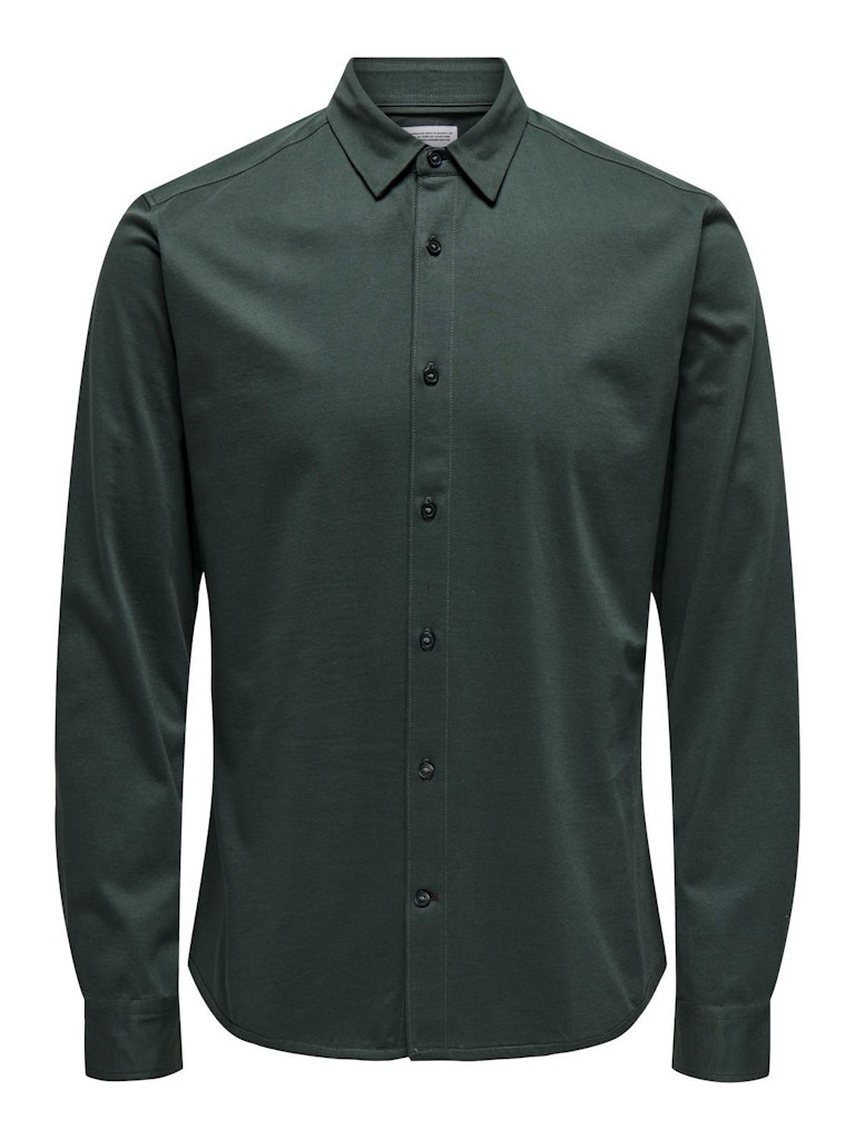 Dit overhemd met stretch is een slim fit model van fijne jersey katoen.