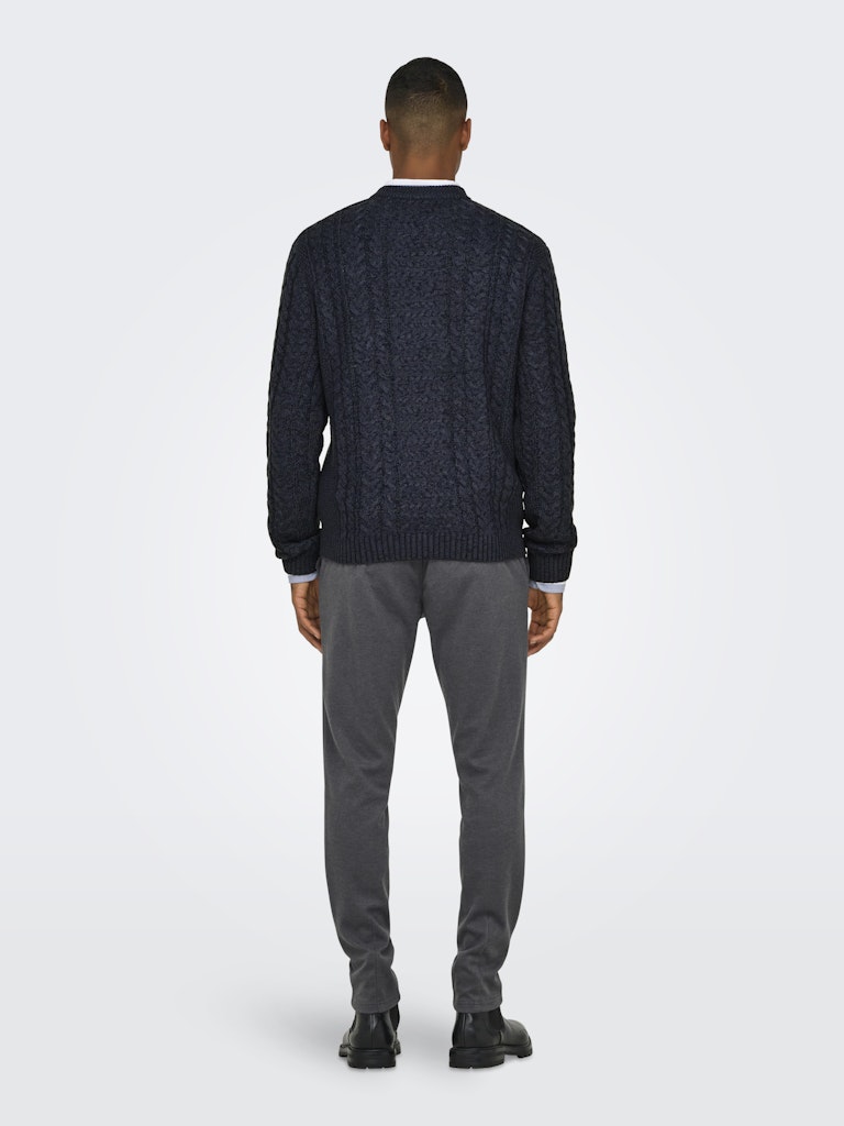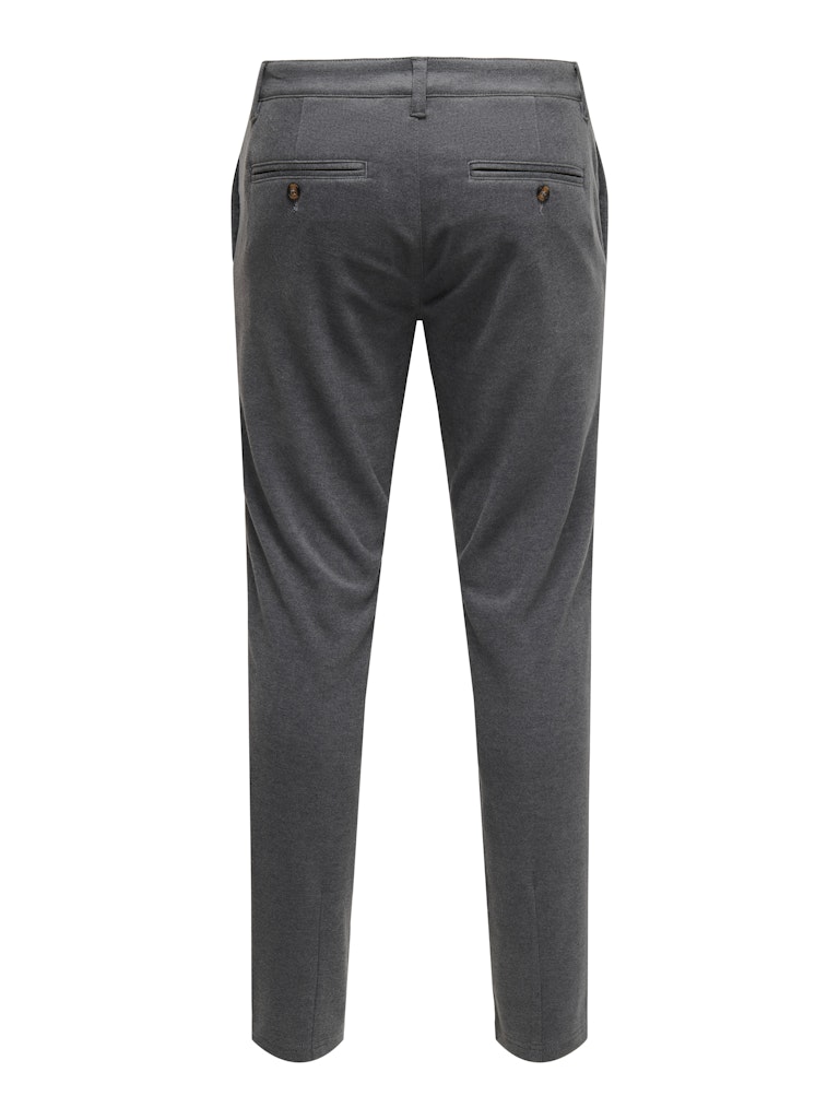 Slim fit chino pantalon van Only & Sons. Deze broek is grijs van kleur in tegenstelling tot de kleurnaam Navy Blazer. Met de welbekende steekzakken en paspelzakken achterop. Met zijn nette uitstraling doet deze broek het goed tijdens de feestdagen maar draag hem ook in het nieuwe jaar want deze broek combineer je makkelijk op een nette sweater voor een alltime casual chique look.