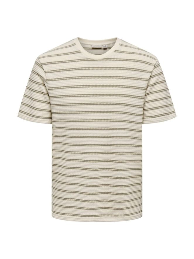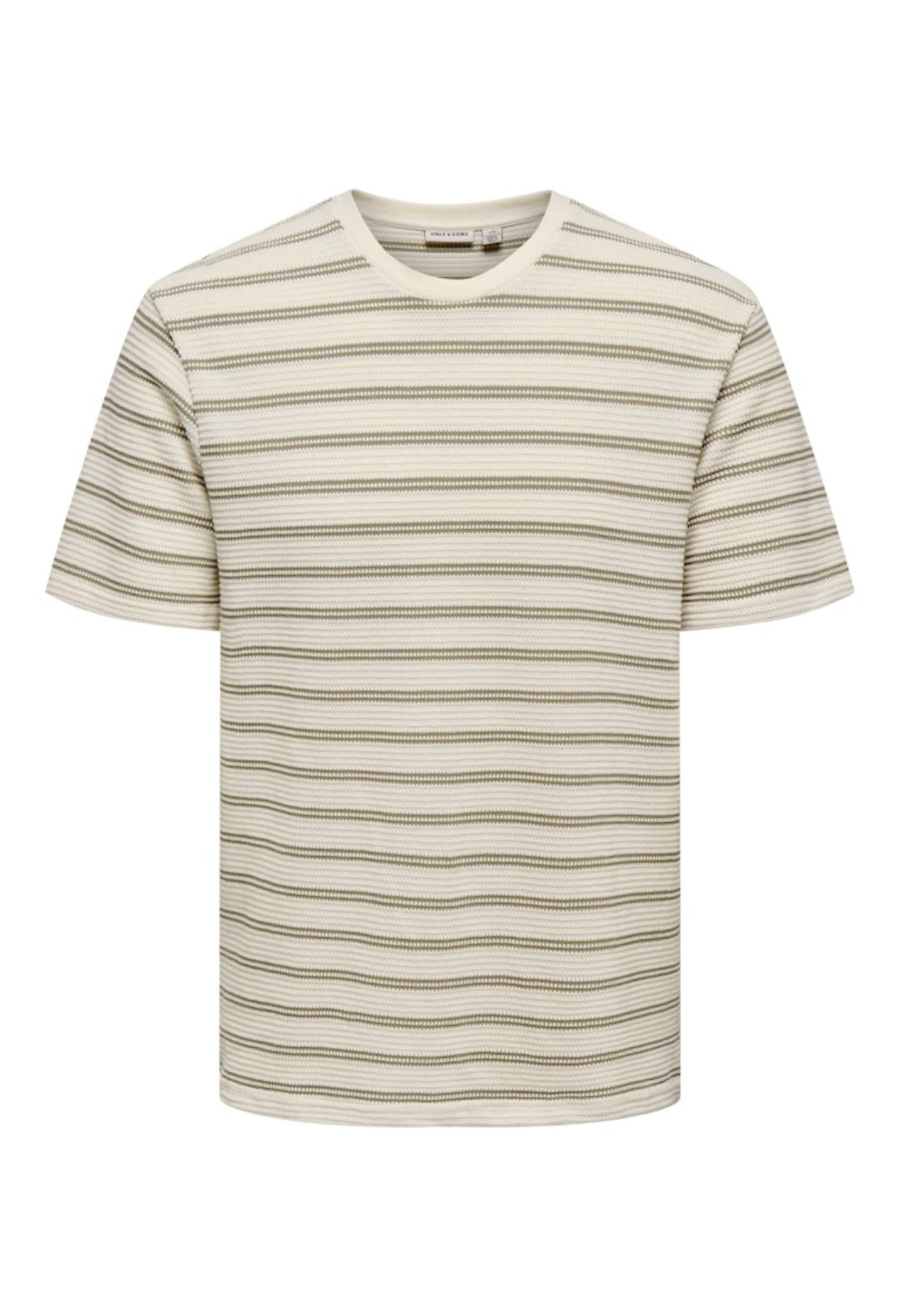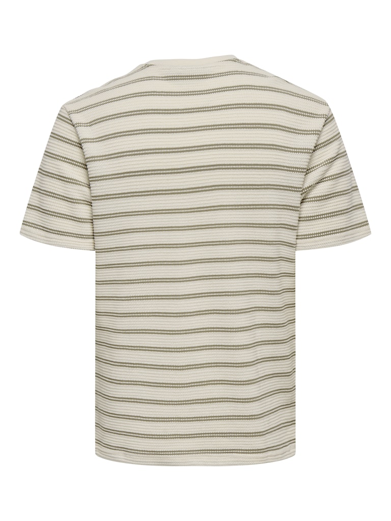 Geen gewoon T-shirt maar een met een aparte structuur in de stof. 100% Katoen en draagt fijn doordat dit shirt best wat stretch bevat.