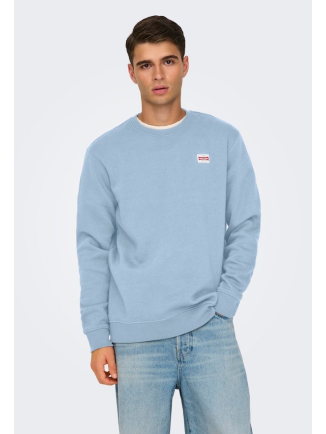 Basic sweater van Only & Sons met logo badge op de borst. Alltime favourite musthave voor je casual outfit. Super zacht aan de binnenkant. Stijlvolle sweater ideaal voor op jeans.