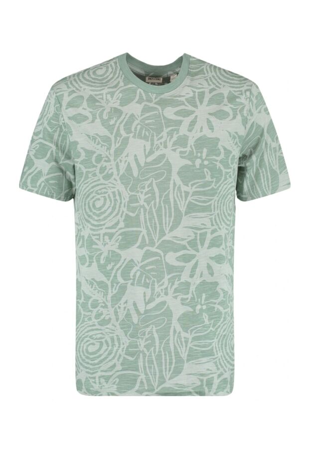 Mooi heren T-shirt van Only & Sons met een allover bladprint. Ideale aanvulling op je garderobe door de vele opties om te mixen en matchen!