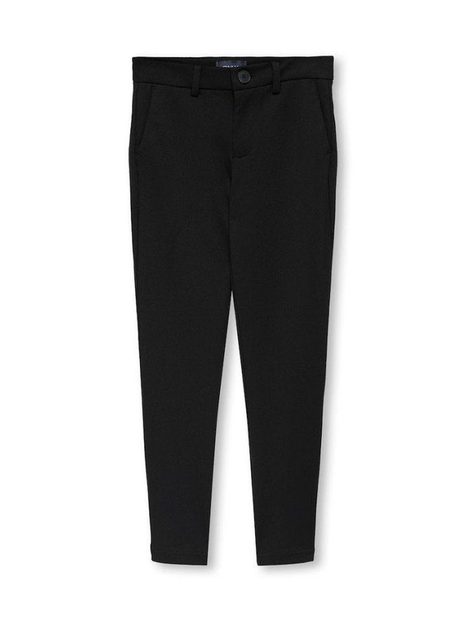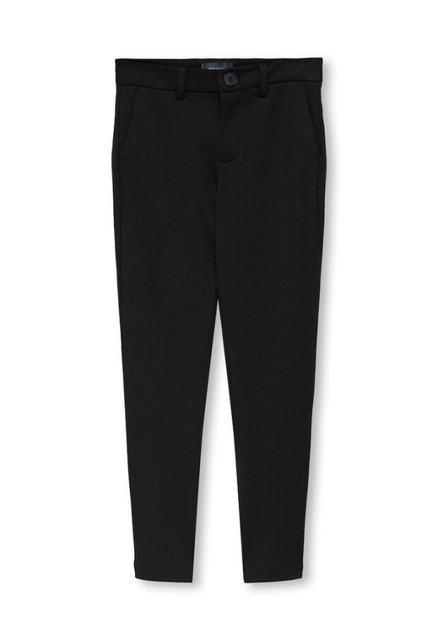 Pantalon van ONLY Kids Boys. Deze broek heeft een regular fit en is gemaakt van een rekbare stof waardoor bewegen gemakkelijk gaat en hij super lekker zit. In de broek zitten steekzakken en de voorkant word gesloten met een rits en knoop. In de taille zit een elastieken band die versteld kan worden.