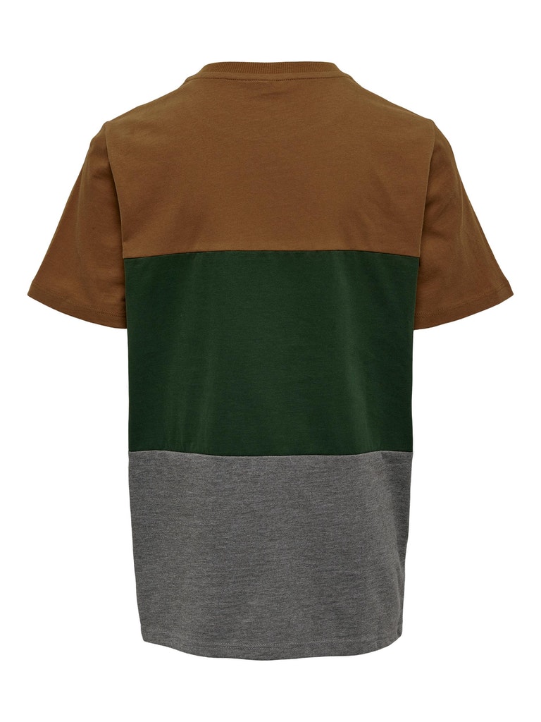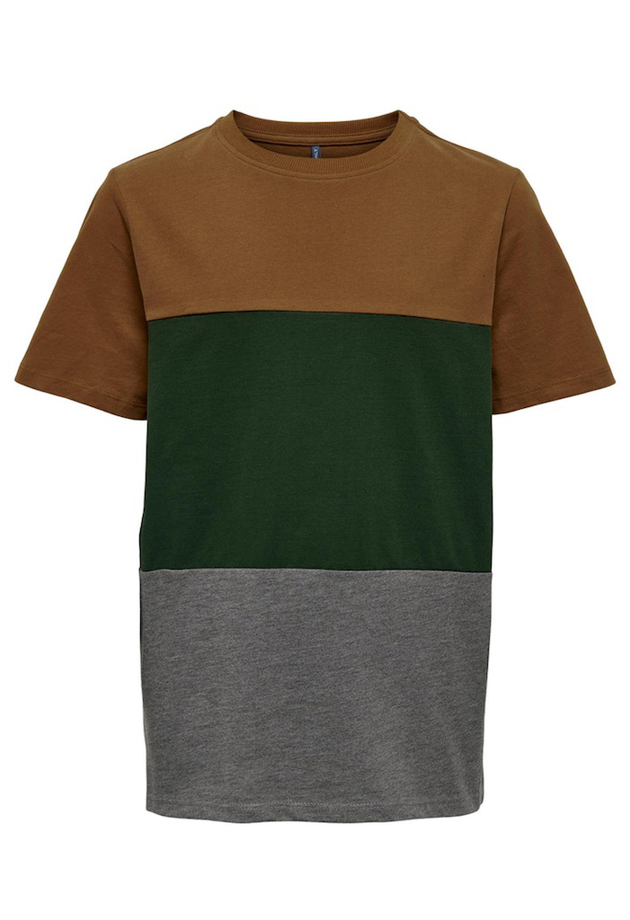 T-shirt van Only Kids Boys. Het t-shirt heeft een color block van 3 kleuren. Materiaal: 100% katoen. Wassen op 30 graden, niet bleken, niet in de droger, kan gestreken worden.