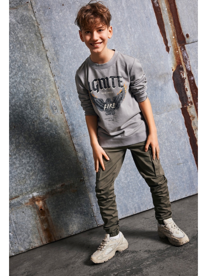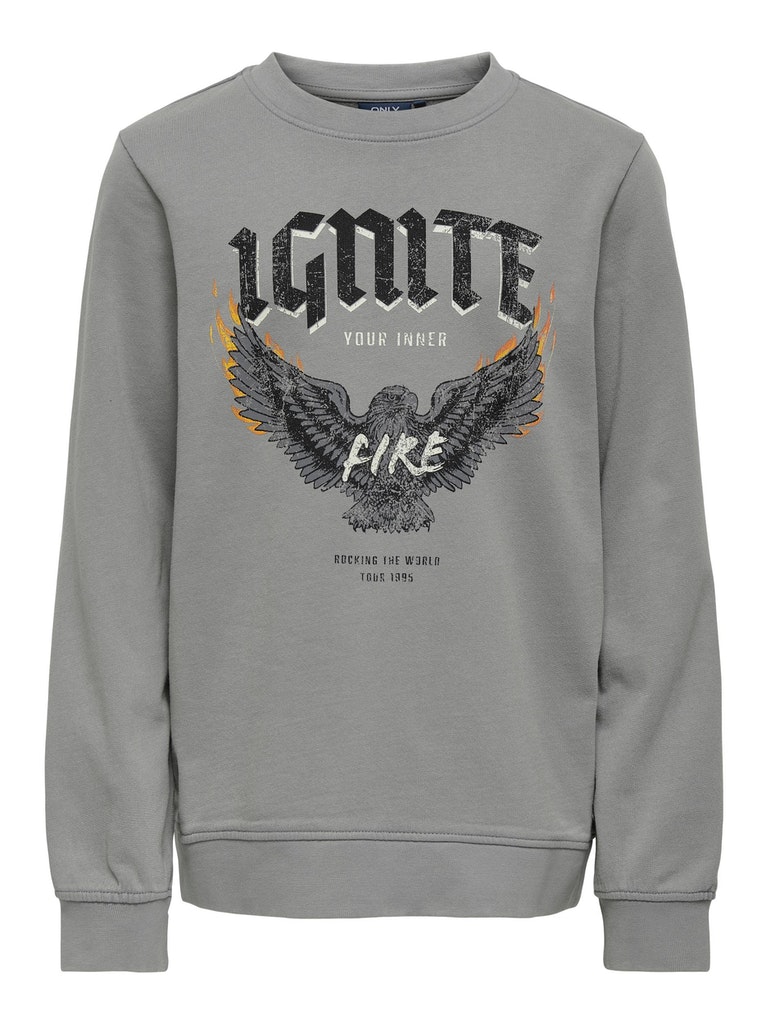 Sweater van Only Kids Boys. De trui heeft een stoere tekst print op de voorkant. Materiaal: 100% katoen. Wassen op 30 graden, niet bleken, niet in de droger, kan gestreken worden.