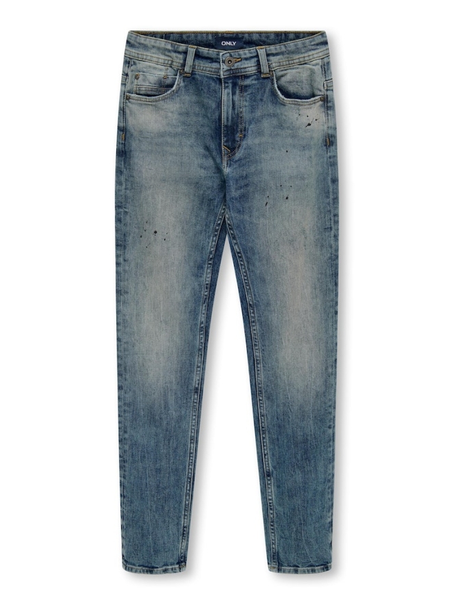 Stoere 5 pocket jeans voor jongens. Deze spijkerbroek heeft een slim fit model en een used look met spetters.