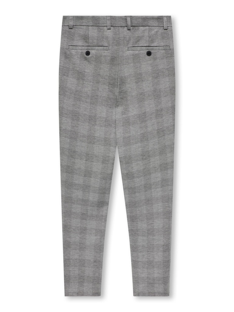 Jongens broek met ruitmotief, twee steekzakken en achterop twee sier paspel zakken.