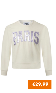 In de collectie van Lizzi Lou vind je niet alleen unieke stukken, maar ook items die overlappen met de meisjescollectie. Als je dochter net uit de meisjescollectie is gegroeid, vind je sommige items ook op de damesafdeling. Maar ook kun je samen met je dochter twinnen in een leuke flare met gilet, of kiezen voor de metallic broeken en sweaters met de tekst 'Paris' erop.