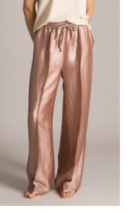Zo vind je binnen de collectie een elegante satijnachtige pantalon in een metallic oudroze tint, die gecombineerd kan worden met een bijpassend bomberjack voor een moderne, vrouwelijke set. Tegelijkertijd kun je deze ook juist weer los dragen met een zachte knit of een luchtige top, waardoor het item op meerdere manieren te stylen is.