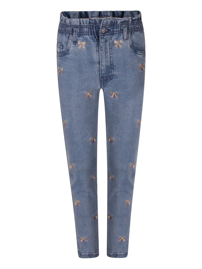 Deze tapered jeans is niet zomaar een spijkerbroek, de geborduurde strikjes geven hem een speelse en girly touch. Gemaakt van stevige denim, perfect voor het najaar. Combineer hem met een warme sweater voor cozy dagen of met een top en gilet voor een echte herfstlook.