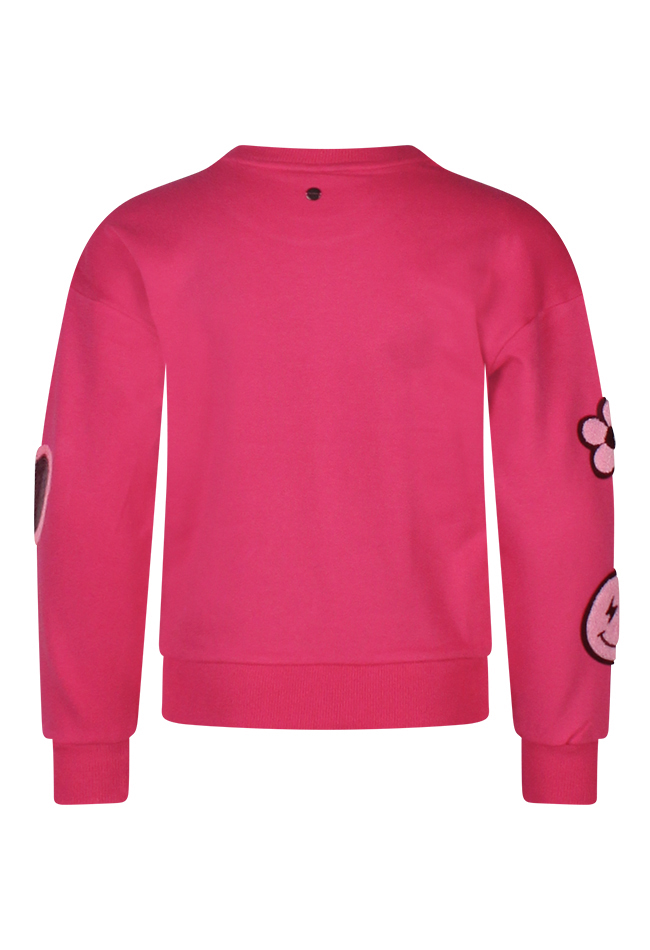 Deze trendy meisjes sweater heeft een mix van leuke patches, zoals een pailletten strik, een vrolijke tekst en een teddy bloem. De zachte binnenkant zorgt ervoor dat de sweater heerlijk draagt, terwijl de coole details hem extra speels maken. Combineer met een jeans voor een stoere, maar comfortabele look!