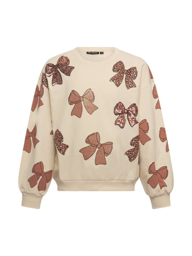 Deze heerlijke, superzachte sweater voor meisjes heeft een all-over print met schattige strikjes die echt de aandacht trekken! De achterkant is lekker rustig met een effen kleur, maar de voorkant is het echte feestje: strikjes met glitters, pailletten en een vleugje panterprint. Perfect voor een trendy en speelse look!