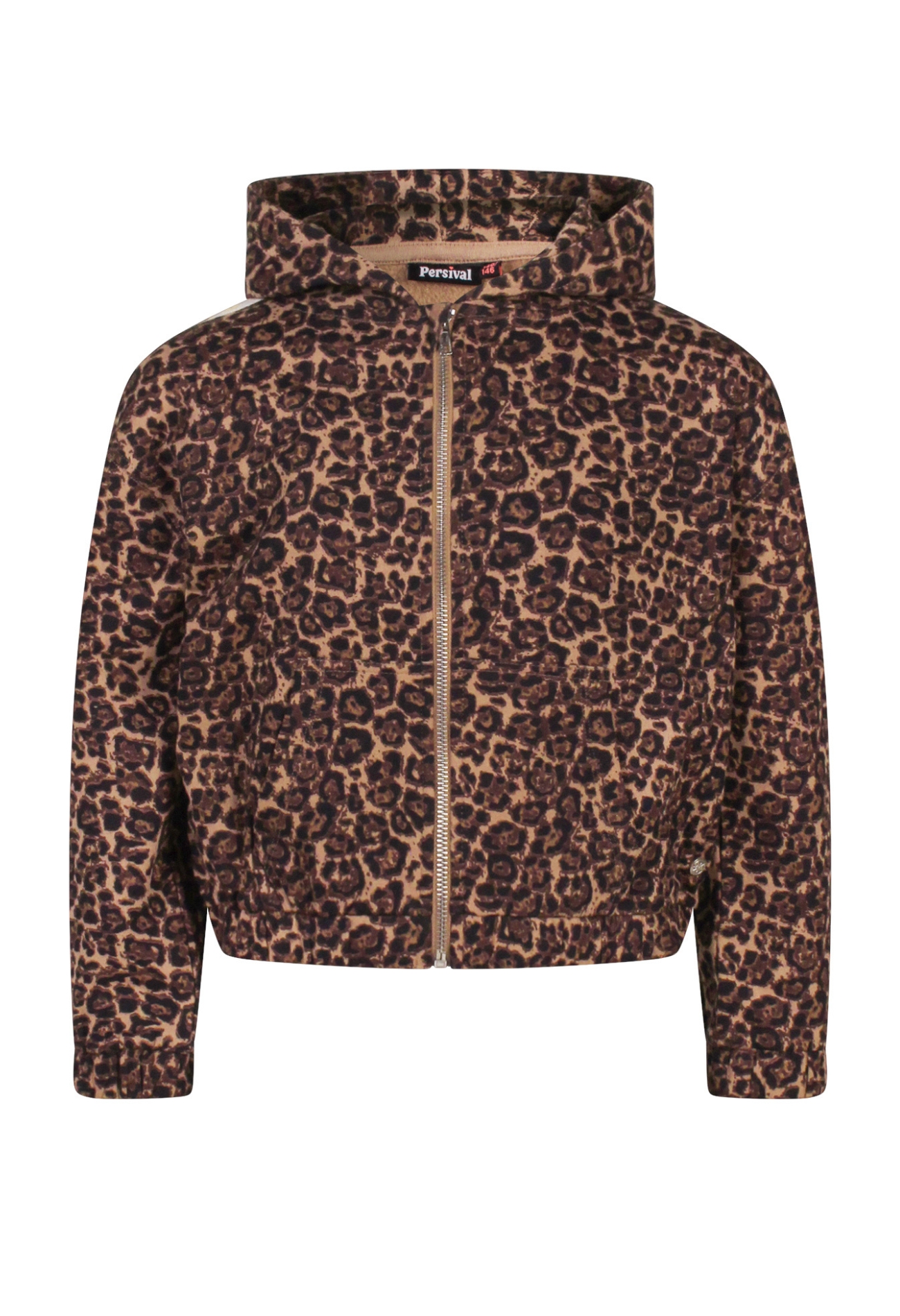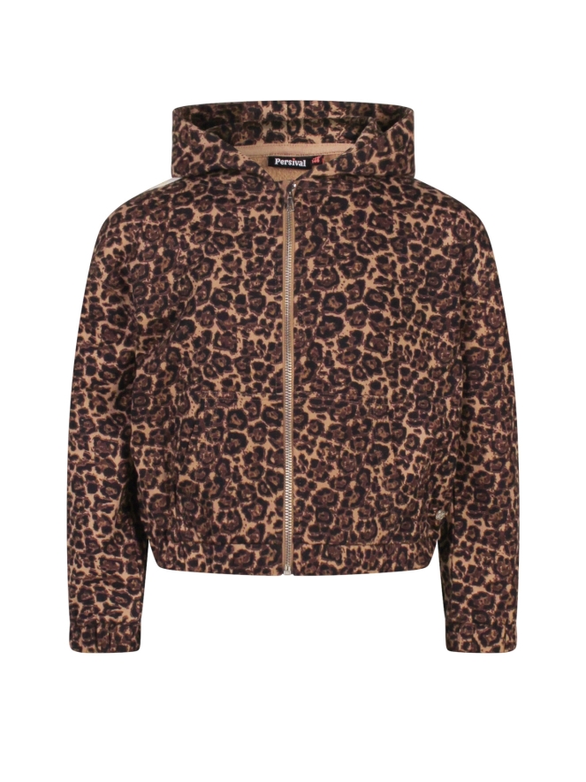 Dit heerlijke vest met fraaie panterprint heeft een capuchon en een mooie bies over de armen met goudkleurige hartjes. Een bijpassende broek hebben we onder art.nr. W10041 maar deze eyecatcher doet het ook erg goed op een mooie jeans.