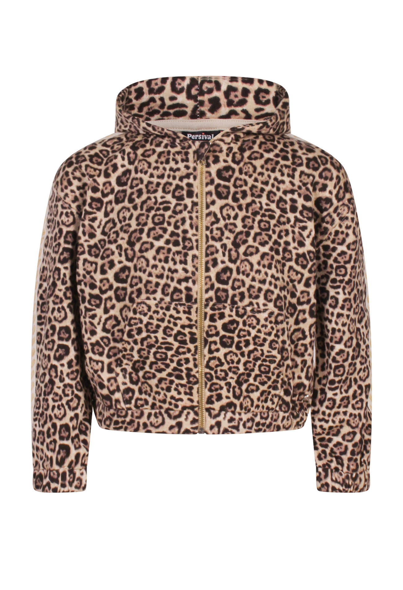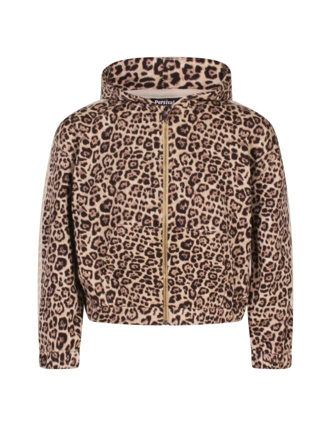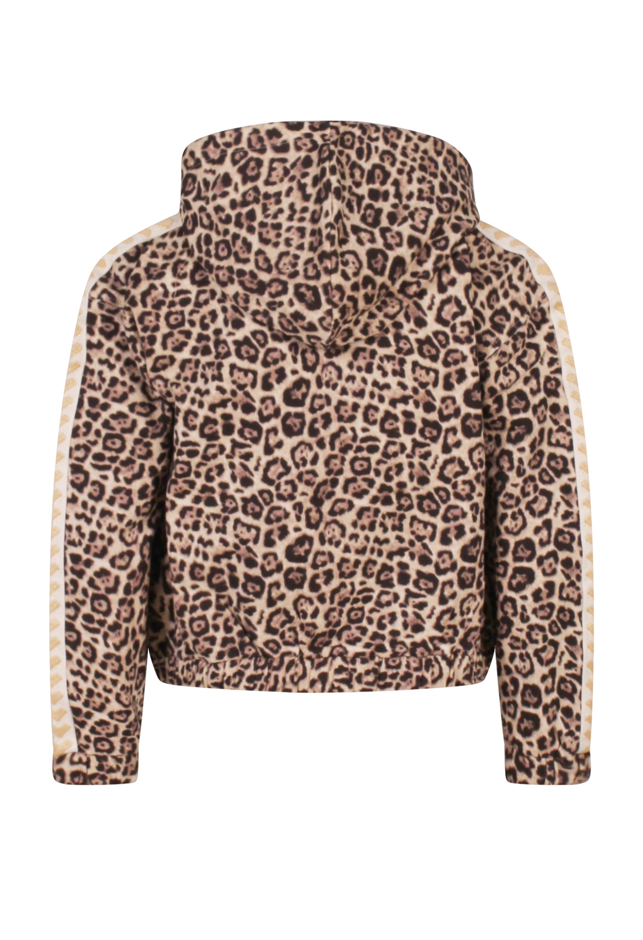 Dit heerlijke vest met fraaie panterprint heeft een capuchon en een mooie bies over de armen met goudkleurige hartjes. Een bijpassende broek hebben we onder art.nr. W10041 maar deze eyecatcher doet het ook erg goed op een mooie jeans.