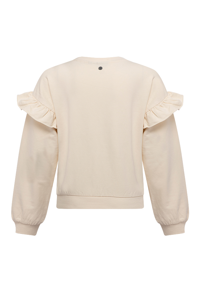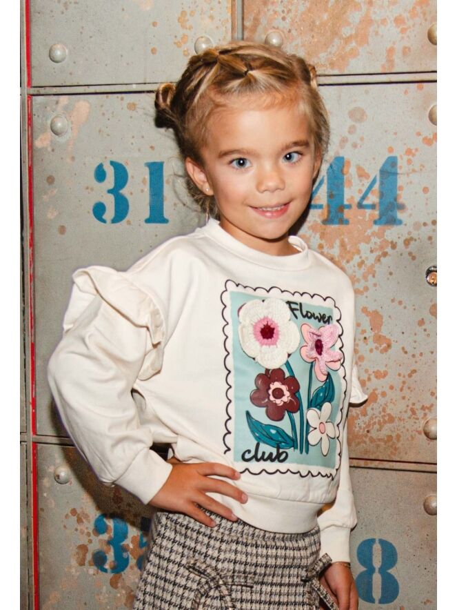 Ook zo gek op bloemen? Dan is deze sweater je op het lijf geschreven! Want in deze print zitten ook nog gehaakte bloemen! Blikvangertje dus! Doet het goed op rokjes maar ook gewoon op spijkergoed!