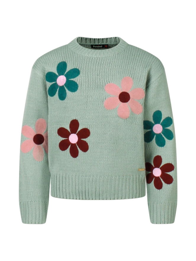Deze grofgebreide meisjestrui met geborduurde bloemen is een echte eyecatcher. Lekker warm en heerlijk zacht, perfect voor frisse dagen. Combineer ?m stoer met een wide leg jeans of ga voor een girly look met een rok of skort en een maillot. Alles kan met deze allround favoriet!