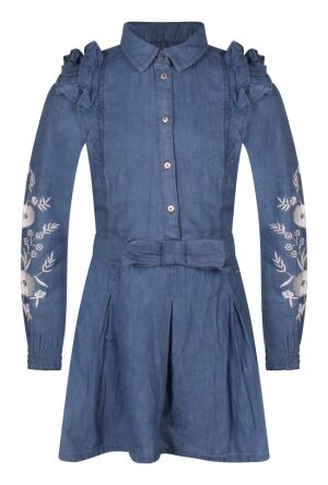 Deze grofgebreide meisjestrui met geborduurde bloemen is een echte eyecatcher. Lekker warm en heerlijk zacht, perfect voor frisse dagen. Combineer ?m stoer met een wide leg jeans of ga voor een girly look met een rok of skort en een maillot. Alles kan met deze allround favoriet!