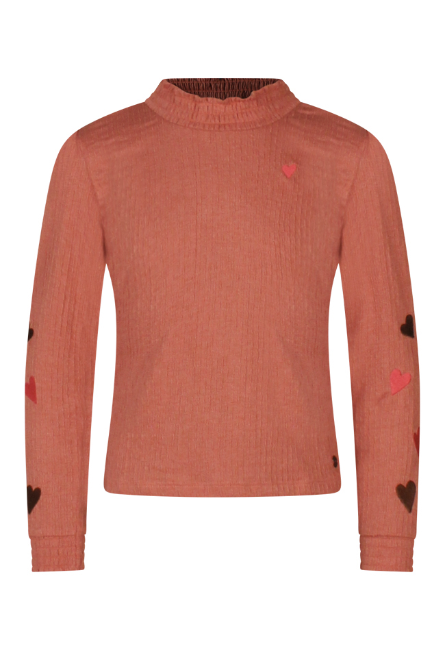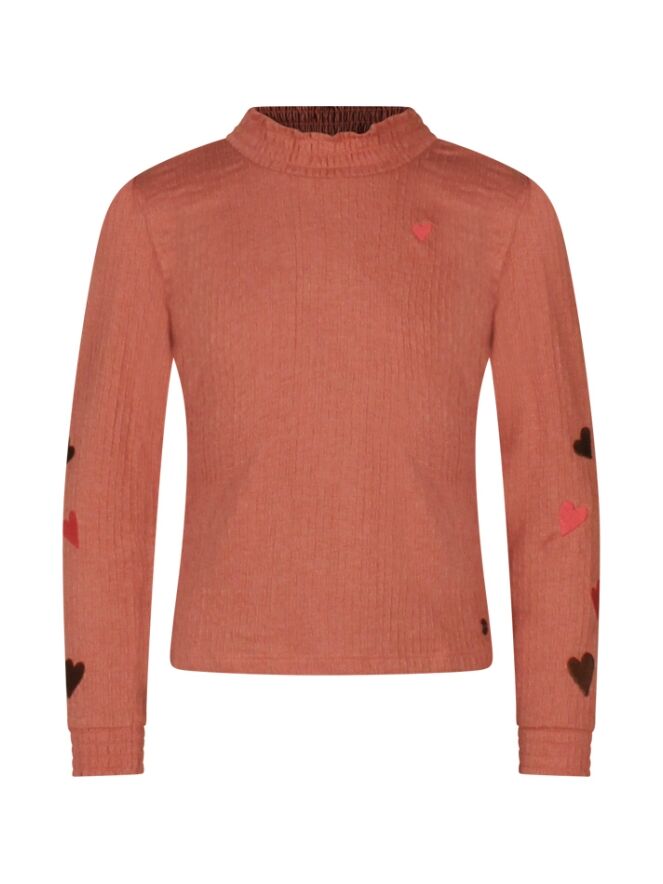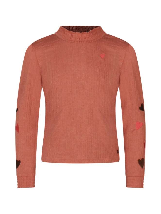 Deze schattige top voor meisjes is gemaakt van crincle stof, wat zorgt voor een speelse textuur. De smock-afwerking langs de hals en mouwen maakt de top lekker elastisch en comfortabel. Op de mouwen zitten geborduurde hartjes in verschillende kleuren, wat de top een extra vrolijke uitstraling geeft.