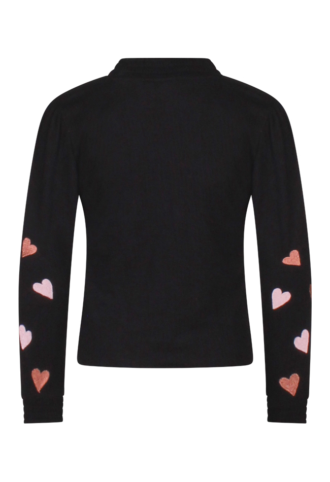 Deze schattige top voor meisjes is gemaakt van crincle stof, wat zorgt voor een speelse textuur. De smock-afwerking langs de hals en mouwen maakt de top lekker elastisch en comfortabel. Op de mouwen zitten geborduurde hartjes in verschillende kleuren, wat de top een extra vrolijke uitstraling geeft.