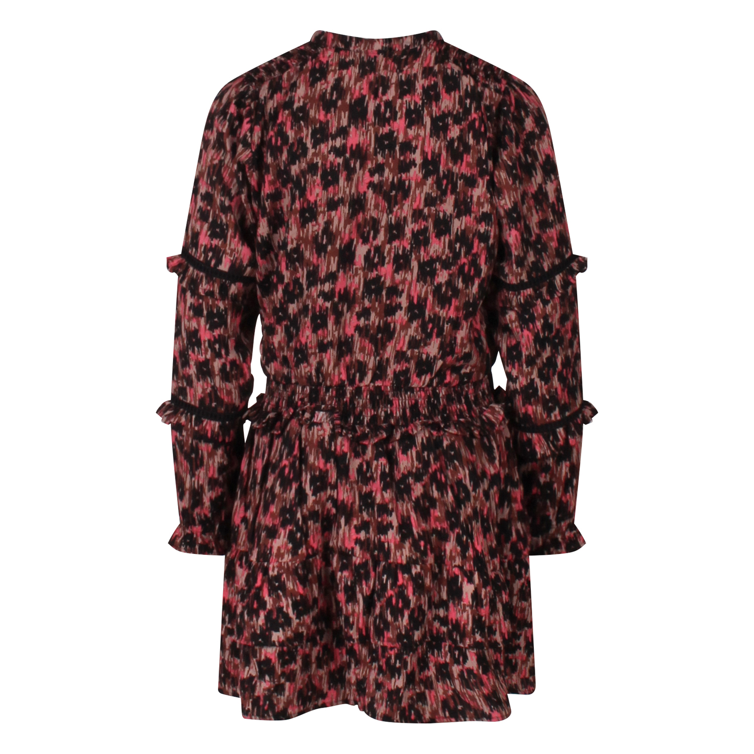 Een frissere dag? Dan kan dit vrolijk gekleurde jurkje gerust aan! Dit jurkje zit vol met leuke details zoals de ruche rond de kraag, smockwerk in de taille en aan het einde van de mouw. Mooie sierbelijning in de mouwen en mooie stroken in de rok. Legging eronder met stoere boots en de set is compleet!