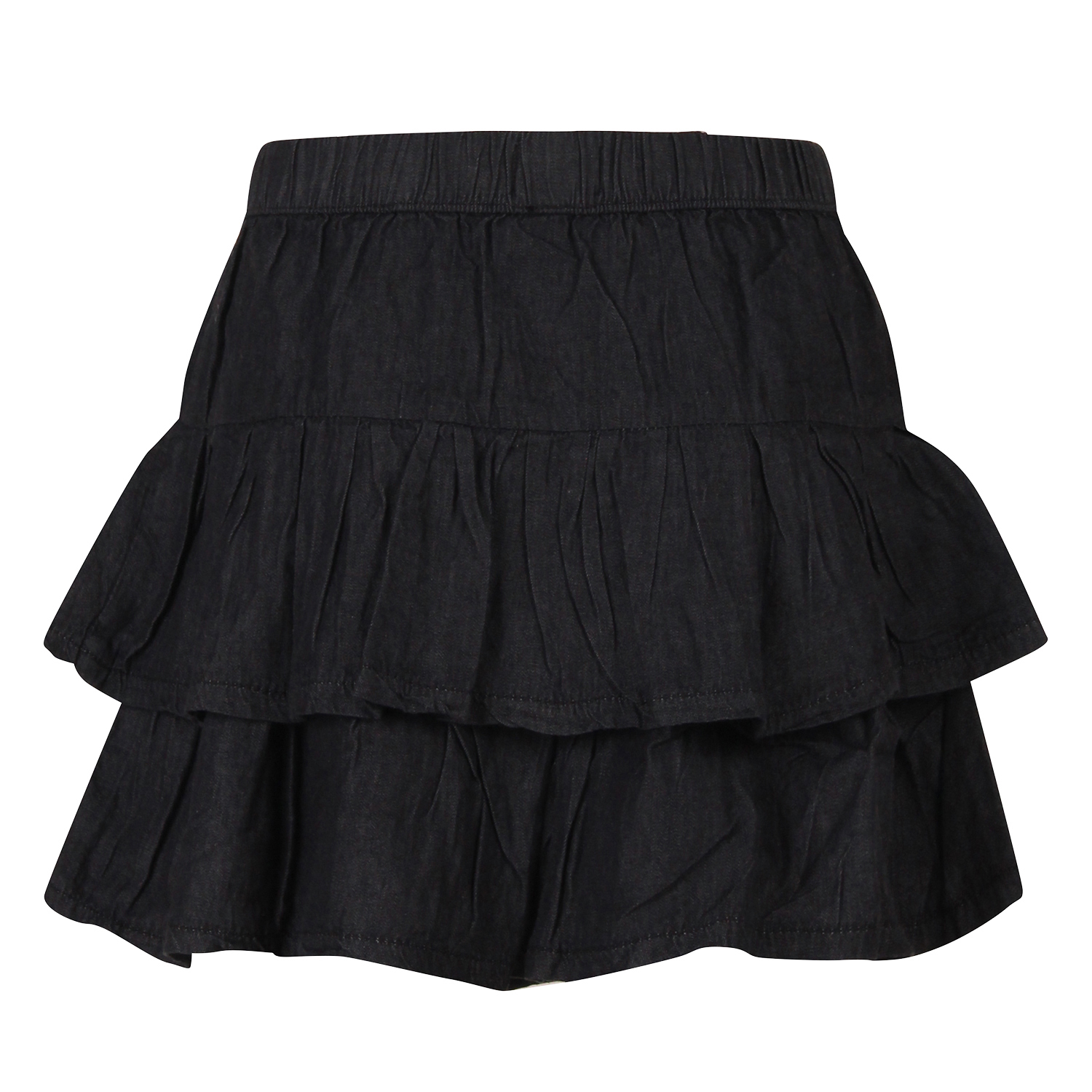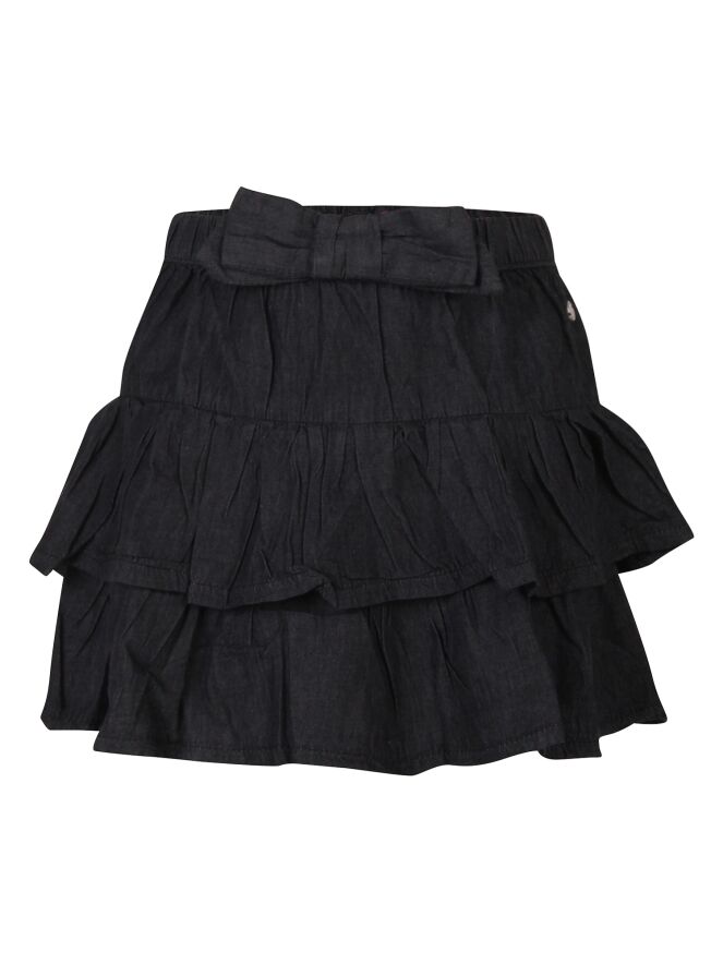 Mooi strokenrokje van 100% katoen in denim style! Dit rokje heeft een mooie strik voorop en zacht elastiek in de taille. Leuk met een legging eronder en een leuk shirt met bijvoorbeeld een giletje.