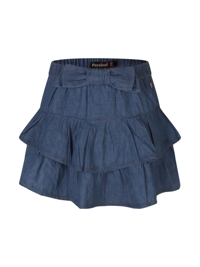 Mooi strokenrokje van 100% katoen in denim style! Dit rokje heeft een mooie strik voorop en zacht elastiek in de taille. Leuk met een legging eronder en een leuk shirt met bijvoorbeeld een giletje.