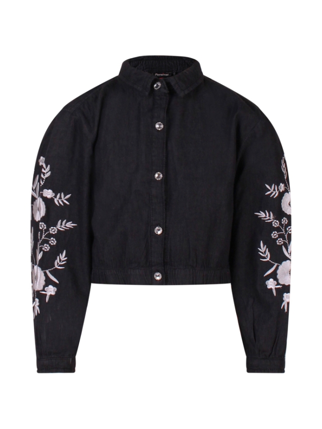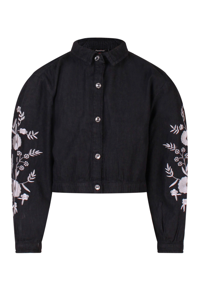Hou je van denim? Dan hebben we een prachtige blouse! Deze dunne denim blouse heeft mooie glim knopen, geborduurde bloemen op de mouw en elastiek in de taille. Let op, dit is een iets korter model.
