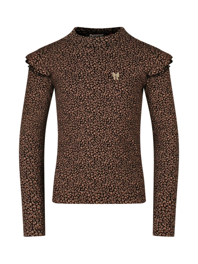 Mooi shirt met een allover panterprintje. Dit fijne shirt heeft een speelse ruche over de shouder een een geborduurd strikje op de borst. Van een comfortabele stof die heerlijk meerekt. Hou je van setjes? Weet dat we ook een bijpassend flair broekje hebben onder art.nr. W10076