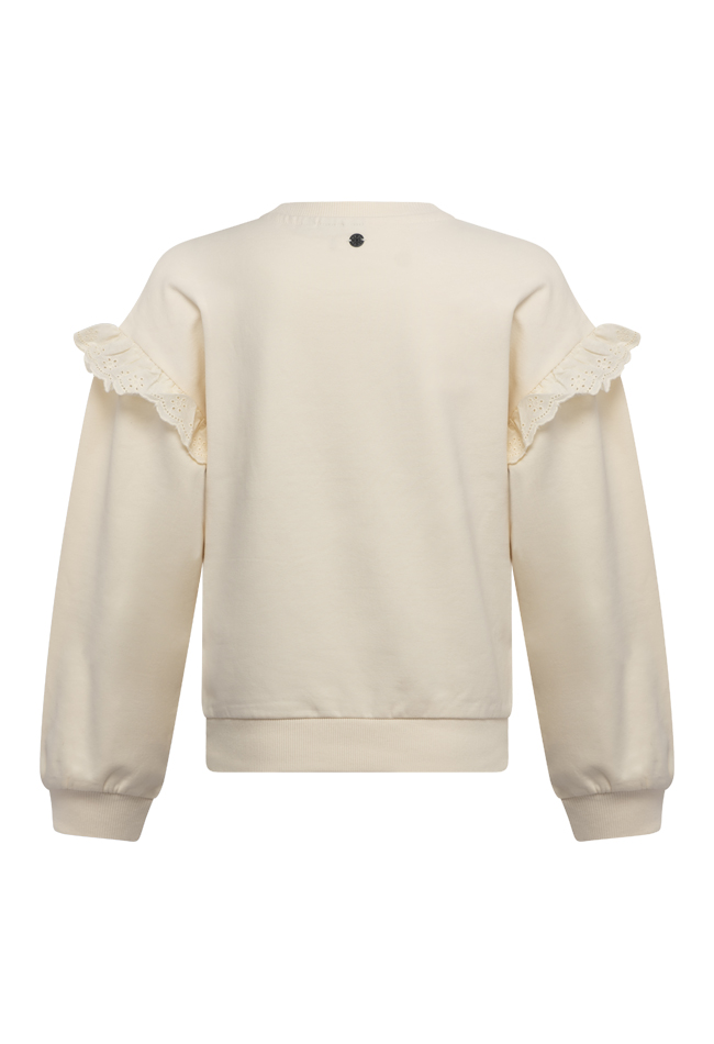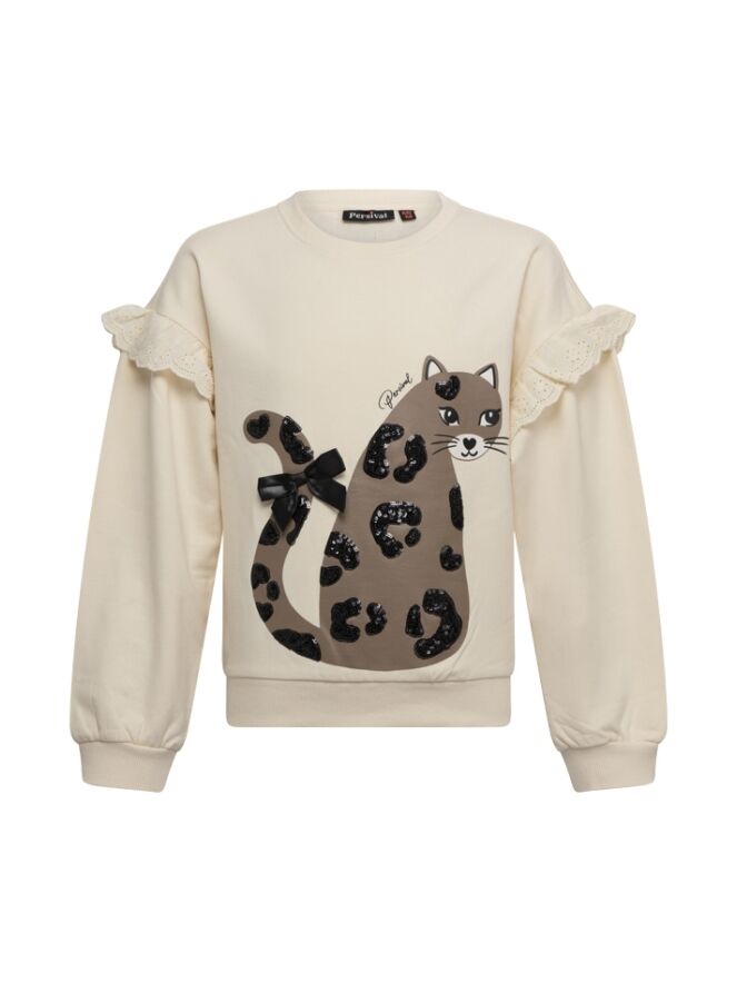Poezig truitje voor lieve meisjes! Deze zachte sweater heeft naast de leuke print ook nog een mooie ruche over de schouder. Cozy, warm, en lekker comfortabel!