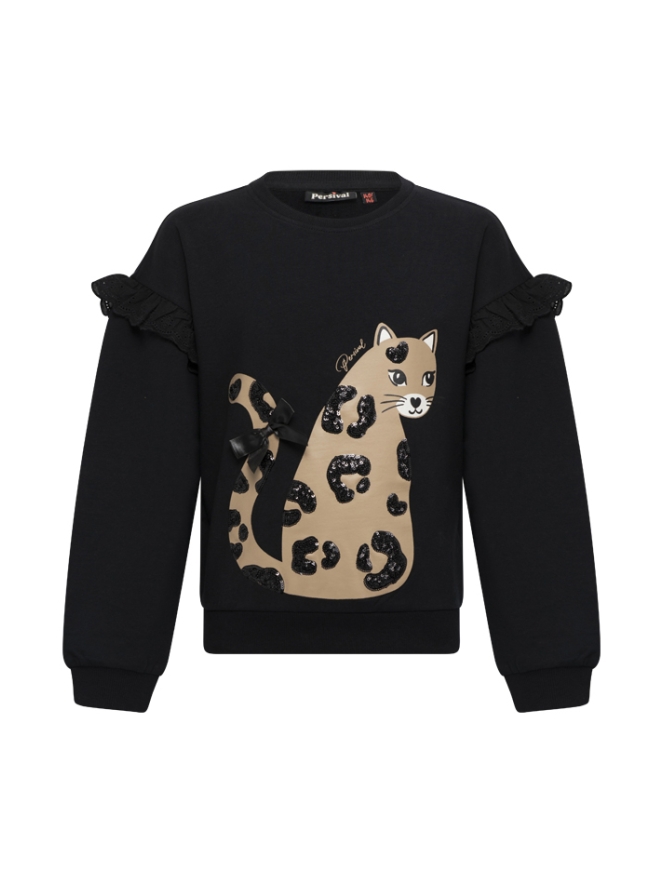 Poezig truitje voor lieve meisjes! Deze zachte sweater heeft naast de leuke print ook nog een mooie ruche over de schouder. Cozy, warm, en lekker comfortabel!