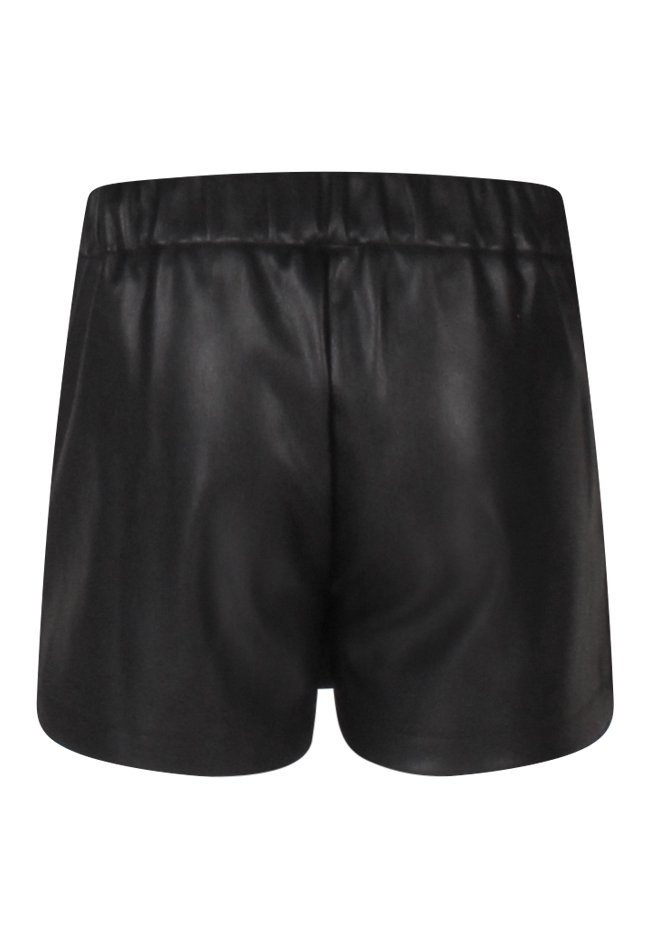 Deze stijlvolle PU skort combineert het gemak van een short met de look van een rokje. De geplooide overslag aan de voorkant geeft een speels rokjeffect, terwijl de parelstuds zorgen voor een subtiele, glamoureuze touch. Gemaakt van soepel leatherlook materiaal, is deze skort perfect voor meisjes die houden van een stoere maar vrouwelijke stijl.