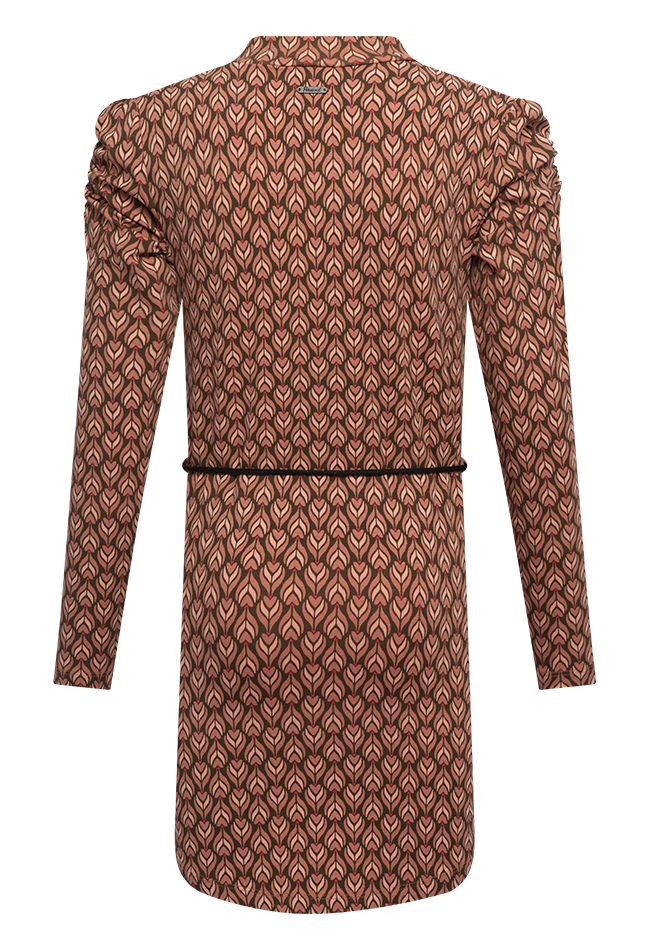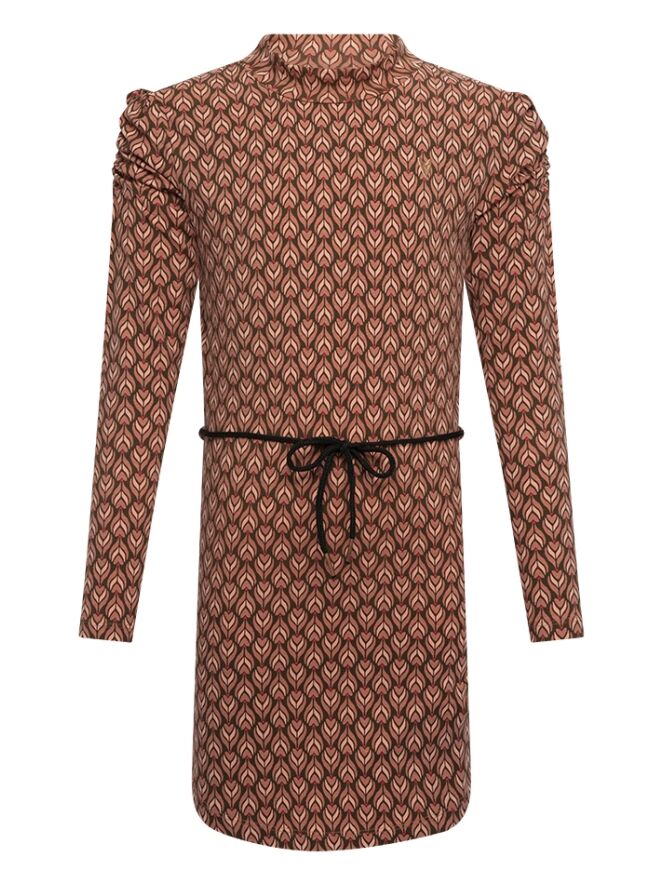 Eenvoudig jurkje in een opvallend retrodesign, recht modelletje met bijgeleverd koord wat gebruikt kan worden als ceintuurtje. Dit jurkje heeft een turtleneck.