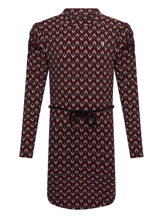 Eenvoudig jurkje in een opvallend retrodesign, recht modelletje met bijgeleverd koord wat gebruikt kan worden als ceintuurtje. Dit jurkje heeft een turtleneck.