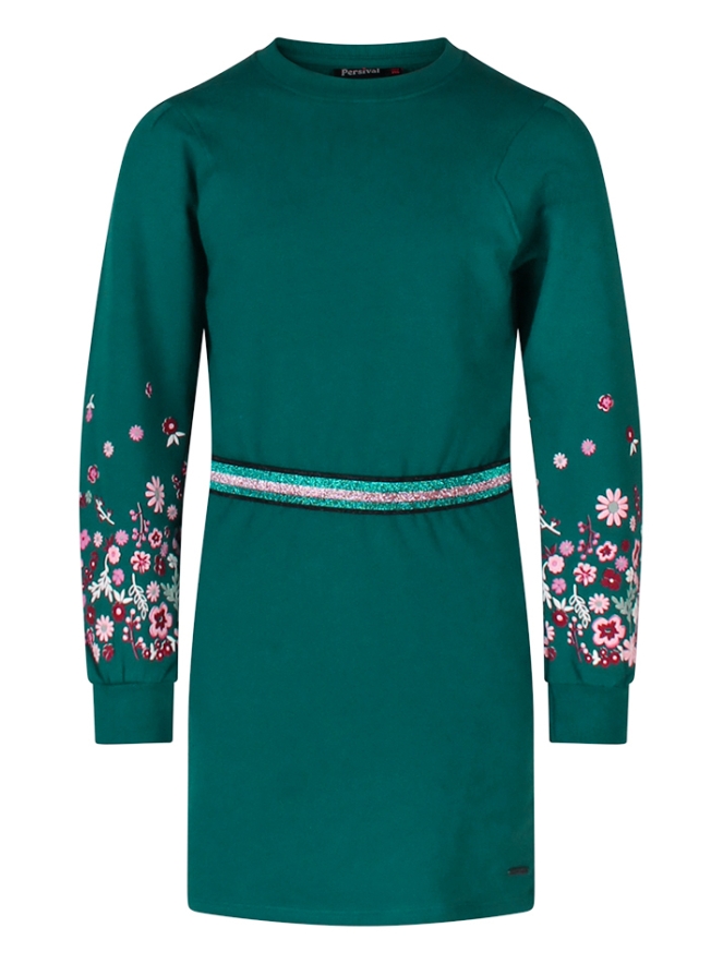 Dit leuke jurkje fleurt ons helemaal op! Zo leuk met de bloemenprint rondom op de mouwen en de elastische glitterende tailleband maakt het geheel helemaal af! En oja, dit jurkje is van sweatstof gemaakt dus mega zacht aan de binnenkant.