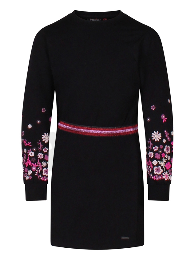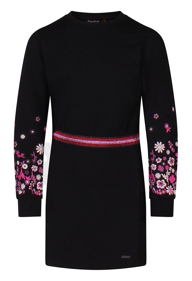 Dit leuke jurkje fleurt ons helemaal op! Zo leuk met de bloemenprint rondom op de mouwen en de elastische glitterende tailleband maakt het geheel helemaal af! En oja, dit jurkje is van sweatstof gemaakt dus mega zacht aan de binnenkant.