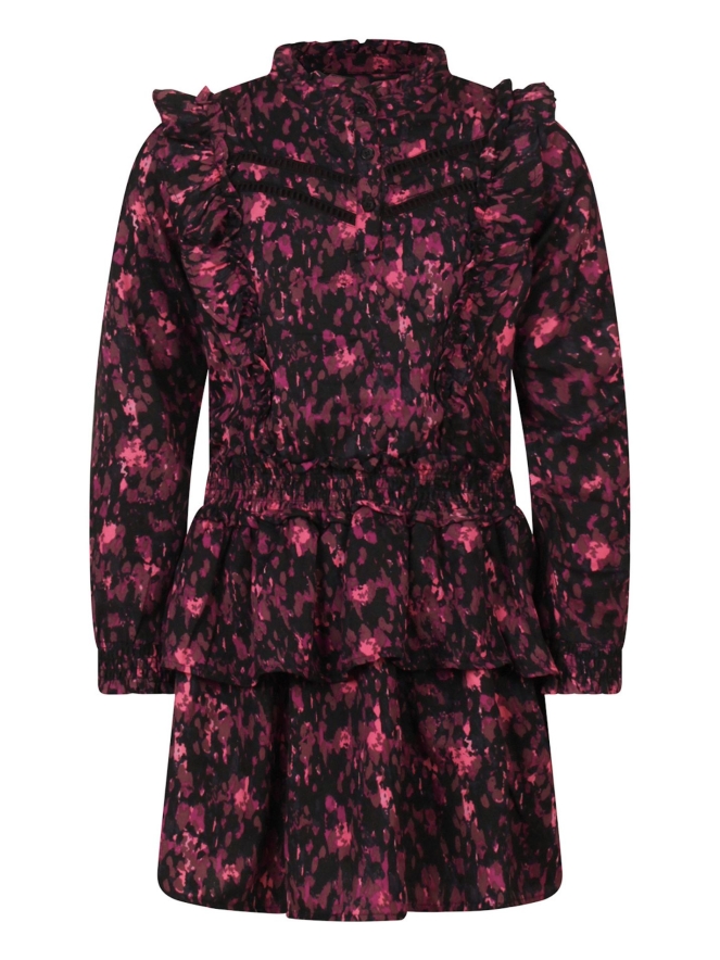 Dit meisjesitem van luchtige crepe stof is versierd met een kleurrijk confettidessin en krijgt extra charme door de ruches en smockdetails. Perfect voor feestelijke gelegenheden, maar ook leuk om casual te combineren voor een vrolijke look.