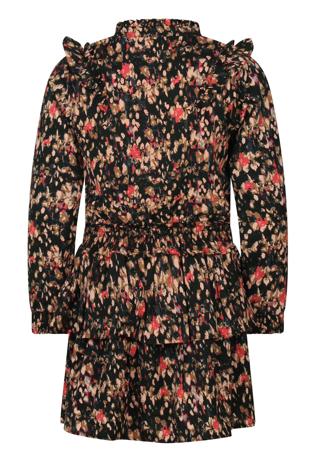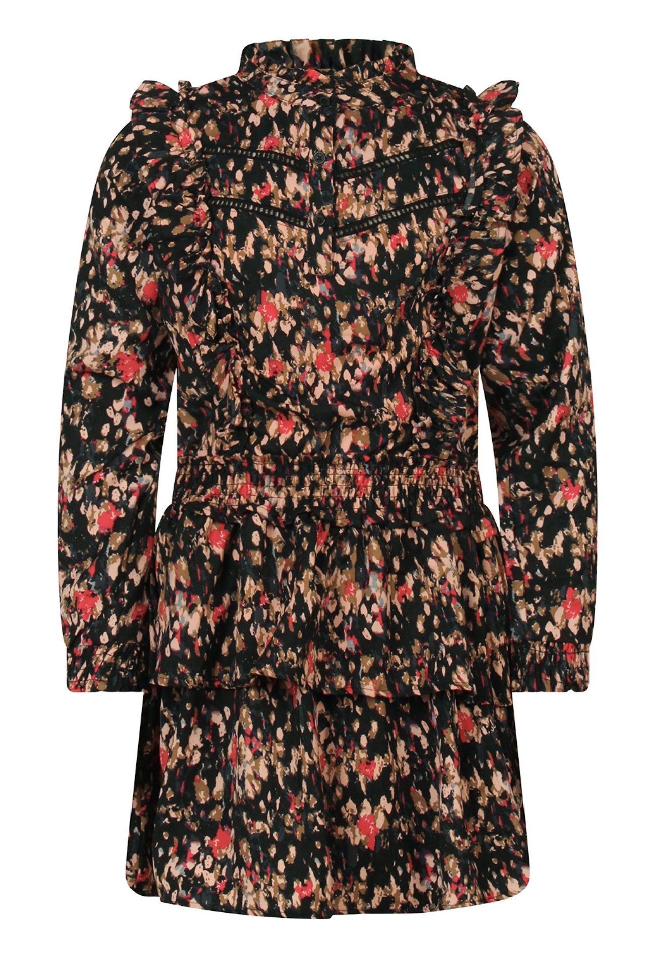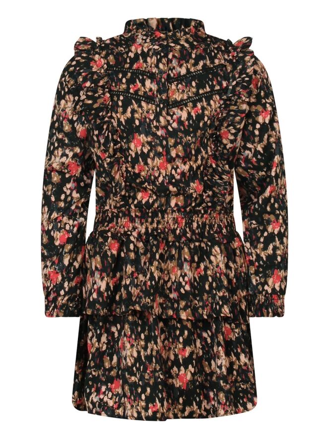 Dit meisjesitem van luchtige crepe stof is versierd met een kleurrijk confettidessin en krijgt extra charme door de ruches en smockdetails. Perfect voor feestelijke gelegenheden, maar ook leuk om casual te combineren voor een vrolijke look.