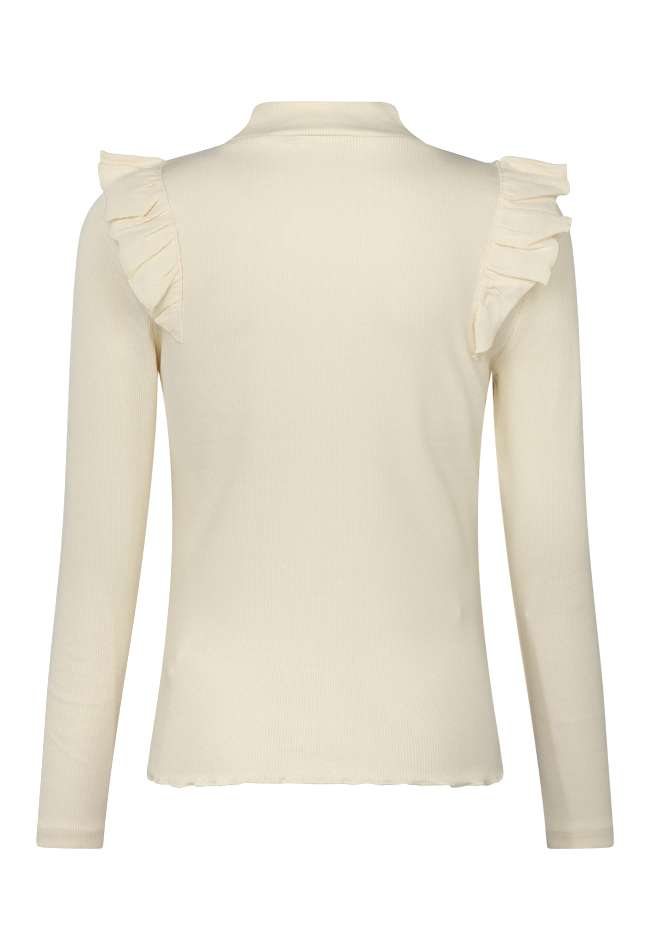 Fijn basis shirt met lange mouwen van een fijne rekbare stof. Daardoor zitten ze heerlijk! Met een mooie ruche over de schouder voor een beetje extra flair en een fijne omsluitende turtleneck. Met prachtig nieuwe trendy najaarskleuren, fris koraal en prachtig wijnrood en wat dacht je van grape of violet!