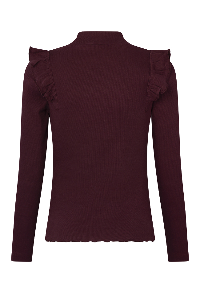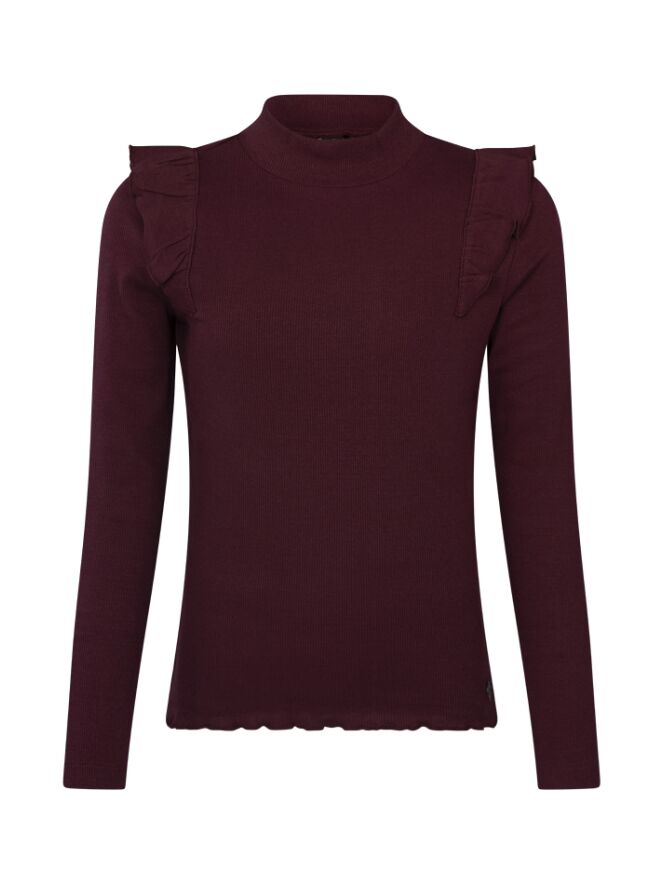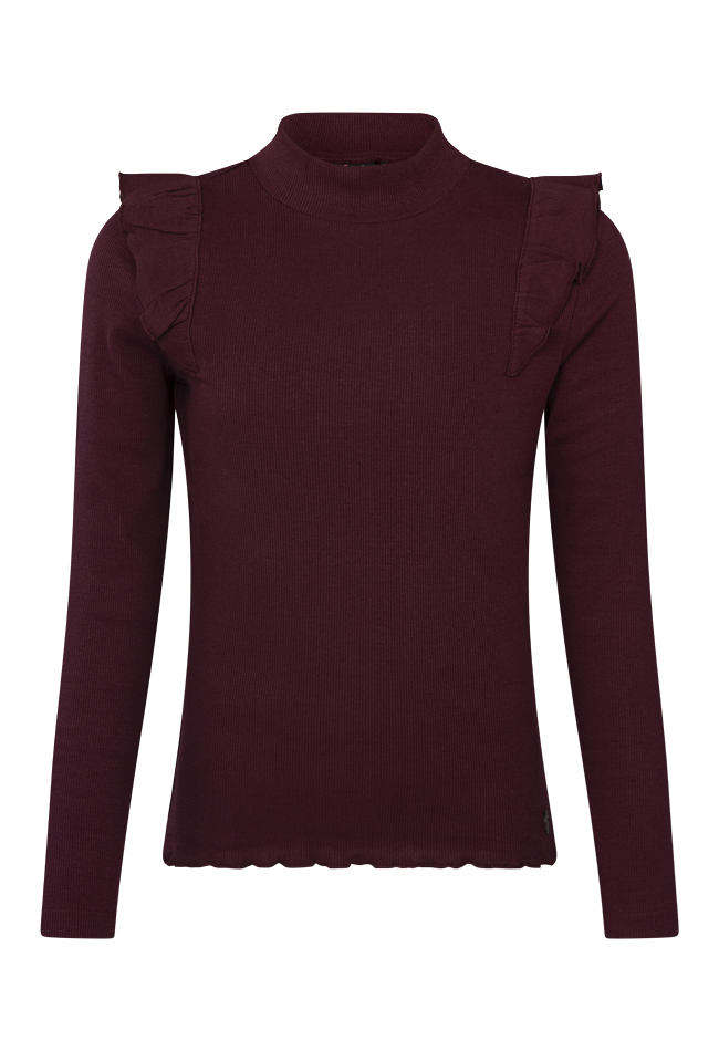 Fijn basis shirt met lange mouwen van een fijne rekbare stof. Daardoor zitten ze heerlijk! Met een mooie ruche over de schouder voor een beetje extra flair en een fijne omsluitende turtleneck. Met prachtig nieuwe trendy najaarskleuren, fris koraal en prachtig wijnrood en wat dacht je van grape of violet!