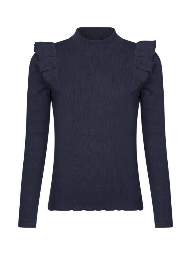 Fijn basis shirt met lange mouwen van een fijne rekbare stof. Daardoor zitten ze heerlijk! Met een mooie ruche over de schouder voor een beetje extra flair en een fijne omsluitende turtleneck. Met prachtig nieuwe trendy najaarskleuren, fris koraal en prachtig wijnrood en wat dacht je van grape of violet!