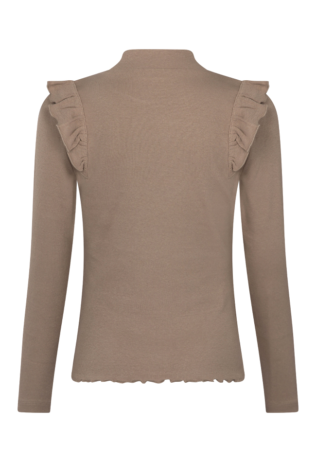 Fijn basis shirt met lange mouwen van een fijne rekbare stof. Daardoor zitten ze heerlijk! Met een mooie ruche over de schouder voor een beetje extra flair en een fijne omsluitende turtleneck. Met prachtig nieuwe trendy najaarskleuren, fris koraal en prachtig wijnrood en wat dacht je van grape of violet!