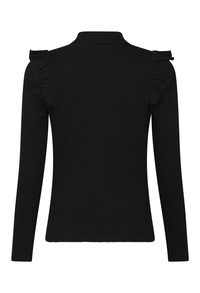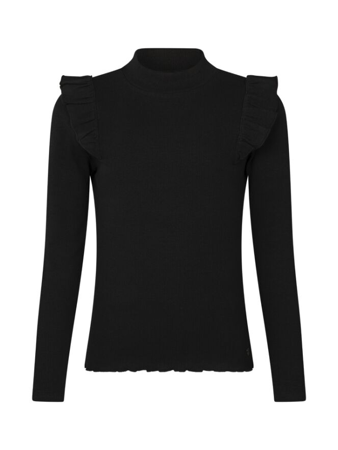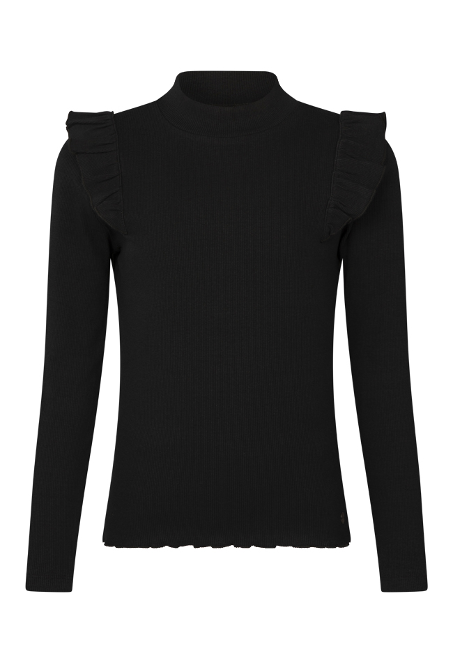 Fijn basis shirt met lange mouwen van een fijne rekbare stof. Daardoor zitten ze heerlijk! Met een mooie ruche over de schouder voor een beetje extra flair en een fijne omsluitende turtleneck. Met prachtig nieuwe trendy najaarskleuren, fris koraal en prachtig wijnrood en wat dacht je van grape of violet!