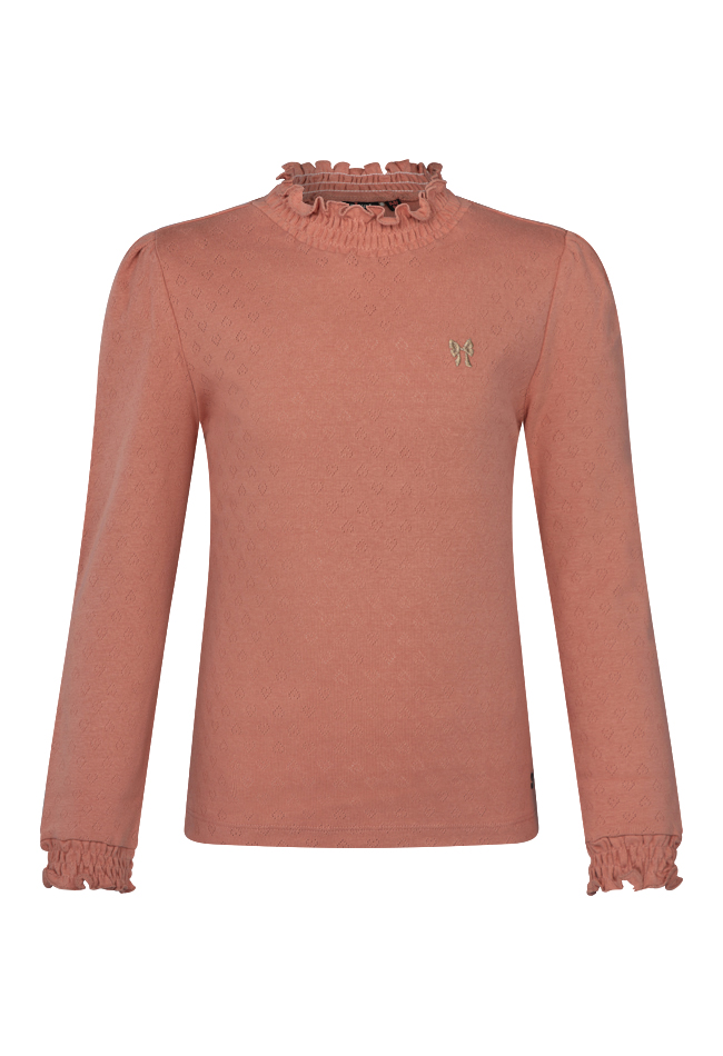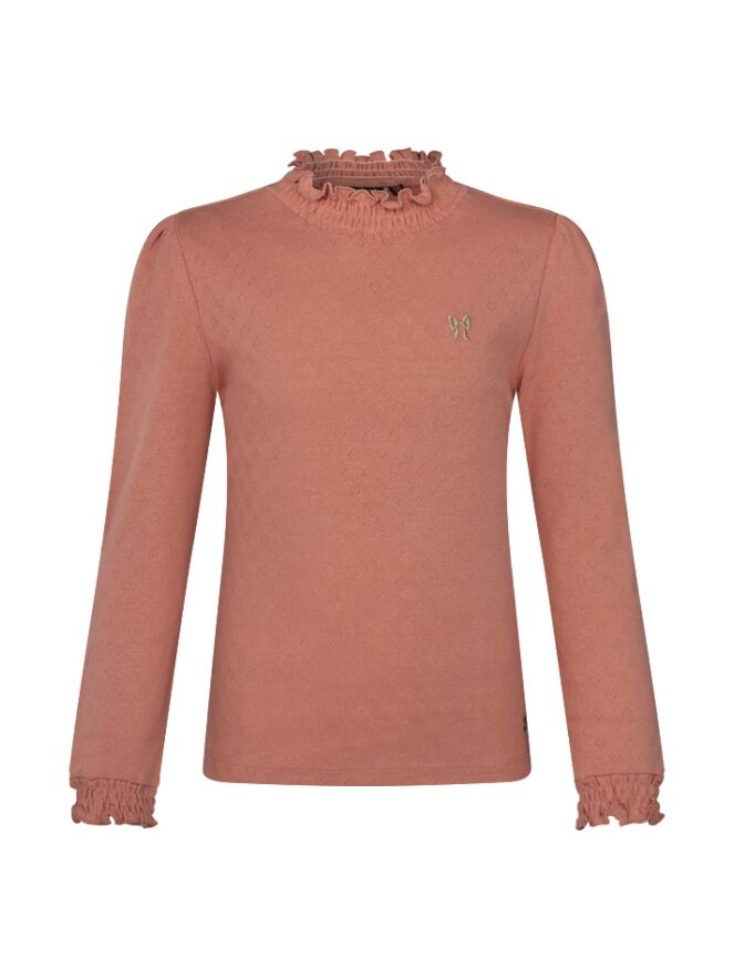 Weer zo'n leuke basic van Persival met een smockhals en kleine hartjes in de stof. Dit shirtje heeft een klein geborduurd strikje op de borst. Verkrijgbaar in 5 verschillende kleuren zodat je makkelijk kan wisselen in je setjes!