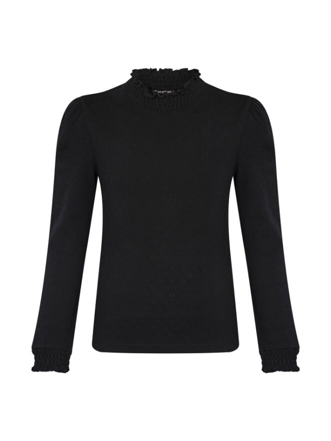 Weer zo'n leuke basic van Persival met een smockhals en kleine hartjes in de stof. Dit shirtje heeft een klein geborduurd strikje op de borst. Verkrijgbaar in 5 verschillende kleuren zodat je makkelijk kan wisselen in je setjes!