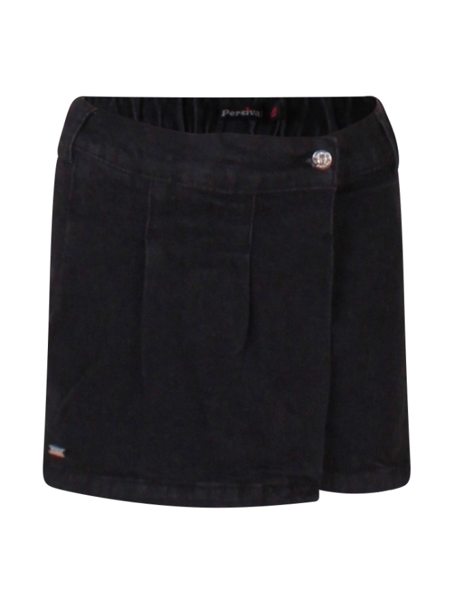 Leuke spijker skort, voorkant een rokje, achterkant een short. Met mooie plooi stiksels voor een klein plooi effect. Modieus en trendy! Maak je setje compleet met een effen shirtje met leuk gilet en een bijpassende legging met je favoriete schoen!