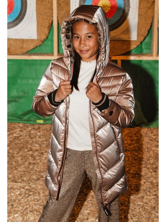 De jas is voorzien van een warme capuchon met zachte voering in een speelse panterprint. Dankzij de zachte teddy voering aan de binnenkant en het langere model blijf je heerlijk warm tijdens winterse dagen. De ribgebreide boorden bij de mouwen zorgen voor extra comfort en houden de kou buiten, terwijl de handige duimopening zorgt voor een sportieve én praktische touch. Aan de binnenkant bevindt zich een handige binnenzak en aan de onderzijde van de jas zitten drie knopen waarmee je eenvoudig een split kunt creëren voor extra bewegingsvrijheid. Perfect om warm én trendy de winter door te komen!