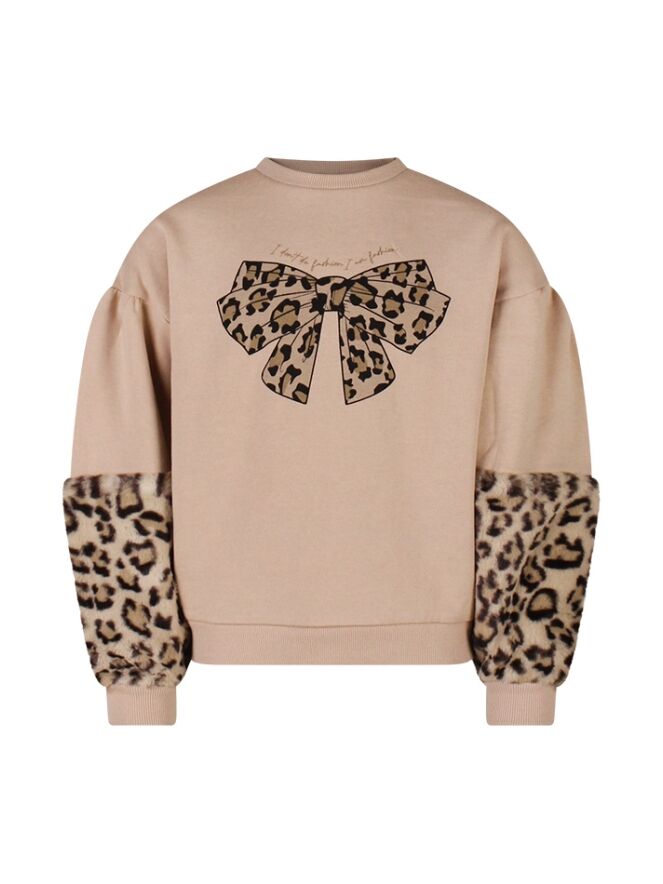 Deze opvallende sweater is een echte blikvanger dankzij de panterprintstrik op de borst en de fake fur pantermouwen, heerlijk zacht én superstoer. De quote "I don't do fashion, I am fashion" maakt 'm helemaal af. Gemaakt van een comfy katoenmix, perfect voor schooldagen of een middagje uit. Combineer 'm met een stoere jeans en sneakers voor een look met attitude!