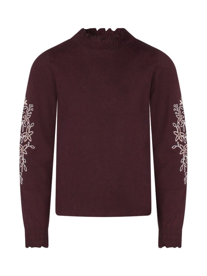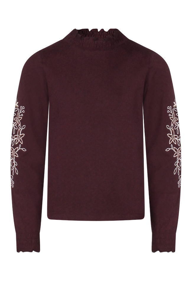 Deze fijne smock top met turtle neck is een echte musthave voor meisjes die houden van een lieve maar hippe look. De mouwen stelen de show met prachtig geborduurde bloemen, terwijl het smockwerk zorgt voor een mooie pasvorm en draagcomfort. Mooi op een rok of jeans en vergeet niet er een leuk gilet overheen te dragen.
